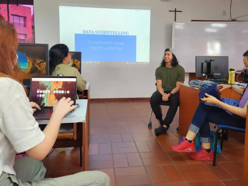 Finalmente, cerramos la programación con el taller “Introducción a la visualización de datos”, liderado desde el Semillero SDA de nuestra universidad, donde se invitó al profesor David Gallo Caycedo, diseñador gráfico con amplia experiencia en el tema. Durante el espacio, el profesor compartió su enfoque de enseñanza inspirado en el trabajo de Cole Nussbaumer, una matemática que trabajó en Google y que descubrió el poder de contar historias a través de los datos.
